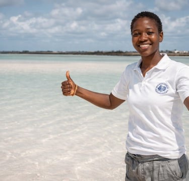 Outside of work, she has a quiet life with her family. She loves being near the beach, especially boating and swimming, which give her a sense of freedom. In her free time, she also enjoys singing, a simple pleasure that lets her express herself in a more creative ways, both in Swahili and English.
